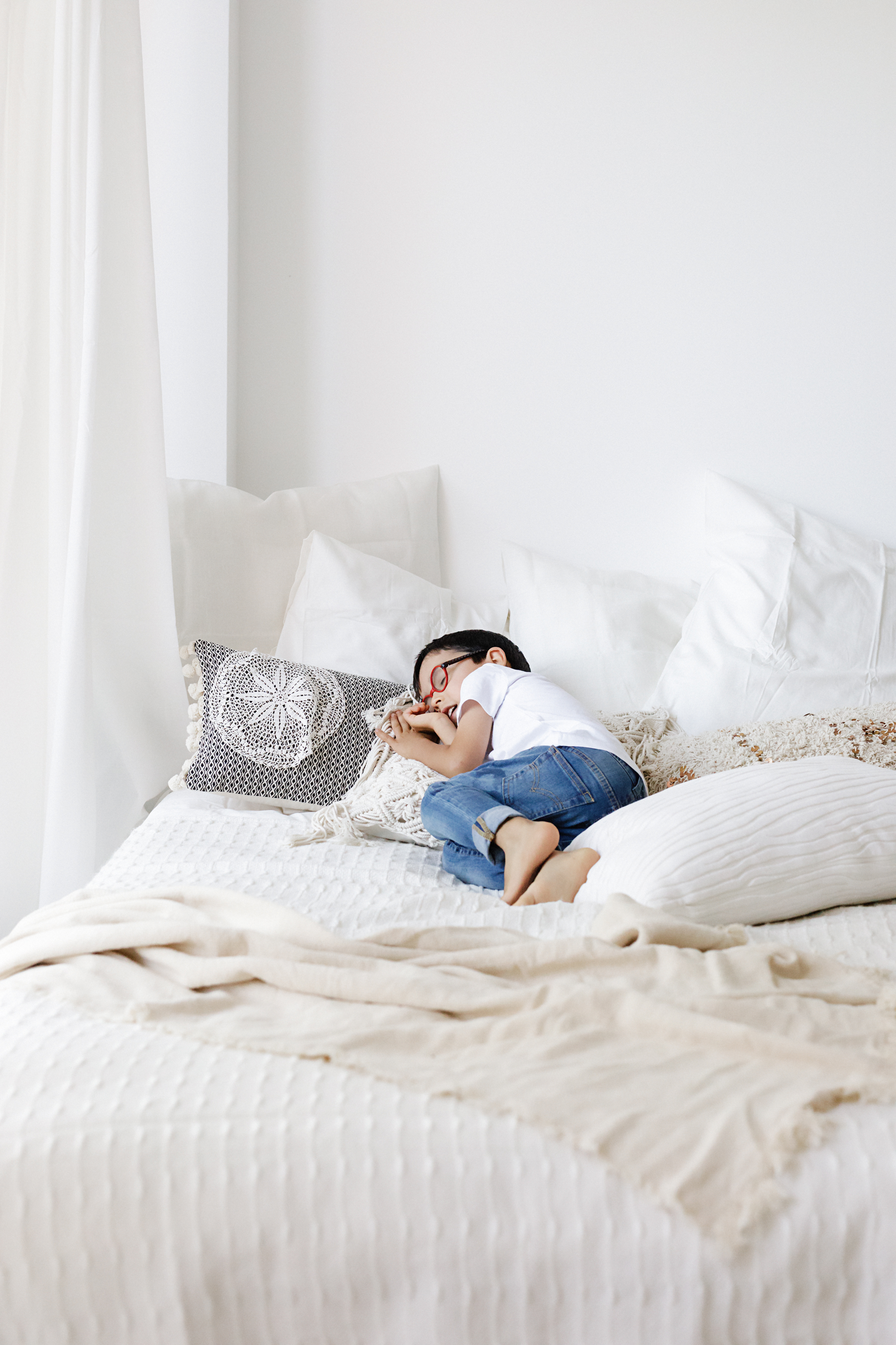 Une séance photo haute en bonne humeur avec un Léo de bientôt 4 ans complètement survolté et qui s’est prêté au jeu comme je ne l’aurai pas imaginé ! Il a sauté, rigolé, jeté des oreillers et regardé l’objectif comme un vrai petit pro pour inaugurer la partie Lit au studio.